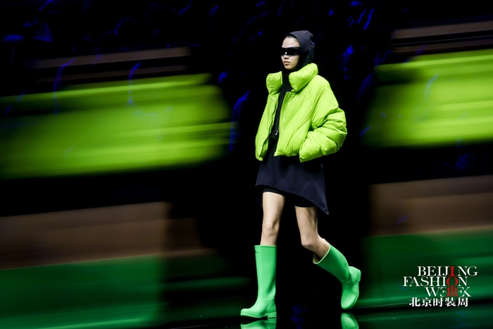 整个秀场,靓丽前卫的胶靴或踏于足下,或成为时尚新品挎于体侧,伴着强劲的乐曲,绽放出化工科技在时尚前沿的另类美学。