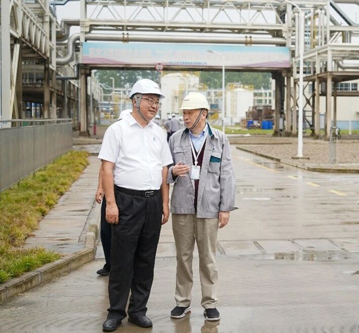 9月25日,北京化工集团党委书记、董事长陈宇,党委副书记吴瑞峰专程来到江苏泰兴,实地调研京腾昊桦安全生产情况。陈宇一行走进生产装置现场,仔细了解现场生产和安全运行情况。